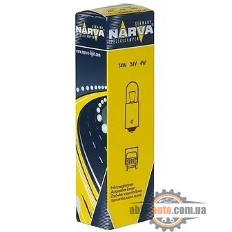 Стандартная автомобильная лампа T4W 24V 4W от Narva. Чаще всего, именно такие лампы устанавливаются на заводе. Подходит водителям, которые не устанавливают высоких требований к освещениюМы советуем устанавливать продукцию Narva, если Вы хотите получить достойное качество товаров немецкого концернаПрием заказов