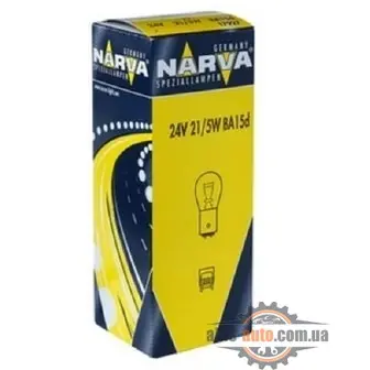 Стандартная автомобильная лампа P21/5W 24V 21/5W от Narva. Чаще всего, именно такие лампы устанавливаются на заводе. Подходит водителям, которые не устанавливают высоких требований к освещениюМы советуем устанавливать продукцию Narva, если Вы хотите получить высокое качество товаров немецкого концернаПрием заказов