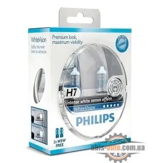 Стиль и яркость, - H7 Philips WhiteVision 12V 55W с цветовой температурой 4300K. Эти лампы ждали давно, ведь они сочетают в себе три основных достоинства: белый свет, повышенная яркость и отличный срок службы.Мы советуем устанавливать лампы этой серии, если Вы хотите получить оптимальный белый свет и увеличенную яркость до 60% для великолепной видимостиПрием заказов
