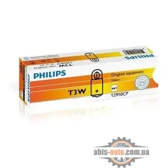 Стандартная автомобильная лампа T3W 12V 3W от Philips. Чаще всего, именно такие лампы устанавливаются на заводе. Подходит водителям, которые не устанавливают высоких требований к освещениюМы советуем устанавливать продукцию Philips, если Вы хотите получить высокое качество товаров немецкого концернаПрием заказов