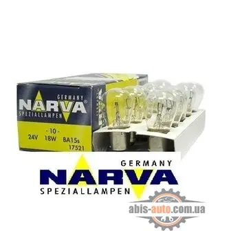 Стандартная автомобильная лампа P25 24V 18W от Narva. Чаще всего, именно такие лампы устанавливаются на заводе. Подходит водителям, которые не устанавливают высоких требований к освещениюМы советуем устанавливать продукцию Narva, если Вы хотите получить высокое качество товаров немецкого концернаПрием заказов
