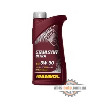 Mannol StahlSynt Ultra 5W-50 SL/CF -- универсальное всесезонное моторное масло на гидросинтетической основе, предназначенное для современных бензиновых и дизельных двигателей с турбонаддувом и без. Разработано с использованием специальной новой уникальной технологии снижения износа StahlSynt. Обеспечивает высокую степень защиты. Гарантирует исключительную чистоту деталей двигателя. Обеспечивает оптимальную вязкость в широком диапазоне температур. StahlSynt Ultra - это надежная работа двигателя в условиях высоких нагрузок, скоростей и частой смены температур. -