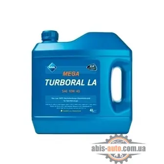 Aral MegaTurboral LA SAE 10W-4 - высокоэффективное моторное масло технологии Aral-синтеза для нового поколения моторов Euro IV фирм MAN, MercedesBenz и др. Имеет низкую сульфатную зольность и минимальное содержание фосфора и серы (Aral Low SAPSTechnology) для максимального ресурса сажевых фильтров.