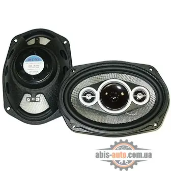 Автомобильная акустическая система, четырех полосная коаксиальная, 6" x 9" (150 х 230мм), неодимовый магнит, малая глубина установки (64 мм), максимальная мощность 200 Вт, номинальная мощность 60 Вт, 65-20000 Гц, 91 дБ, материал НЧ: PP "под плетеный кевлар" , 2" миларовый среднечастотник, материал ВЧ: 0.5" Шелк, 0,75" пьезо твитер. В комплекте провода и защитные решетки.