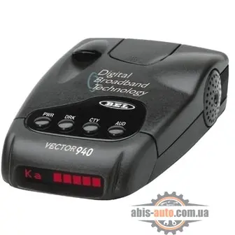 BELTRONICS Vector 940 Radar/Laser Detector". Dominates X/K/Ka radar sensitivity with full compliment of features and functions and a limited selection of digital voice messages. It has automatic or continuous audio alerts, digital voice or unique tones for radar/laser/safety warning systems, audio/visual scroll rate, 'AutoScan' travel mode, inverted display option, normal start-up mode, modifications start-up mode, and quick start-up mode. Includes 8' coiled power cord, quick release winshield and visor brackets, hook & loop fastener, 4 non-skid dash pads, and spare fuse.