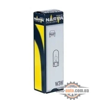 Стандартная автомобильная лампа W3W 12V 3W от Narva. Чаще всего, именно такие лампы устанавливаются на заводе. Подходит водителям, которые не устанавливают высоких требований к освещению.Мы советуем устанавливать продукцию Narva, если Вы хотите получить высокое качество товаров немецкого концернаПрием заказов