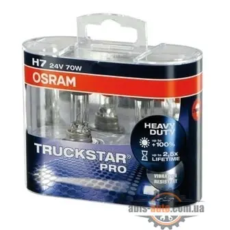 Профессиональные водители день и ночь находятся в дороге. Лампа H7 Osram Truckstar Pro 24V 70W может дать высочайшую надежность и максимальную эффективность. Световой пучок на 40 метров дальше, срок службы в 2 раза большеМы советуем устанавливать лампы этой серии, если Вы хотите, при стандартной потребляемой мощности, получить увеличенную до 100% яркостьПрием заказов