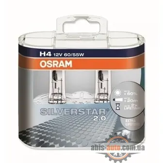 H4 OSRAM SILVERSTAR 2.0 +- 60%- 12V 60/55W 64193SV2-HCB (-ПУ.2)-