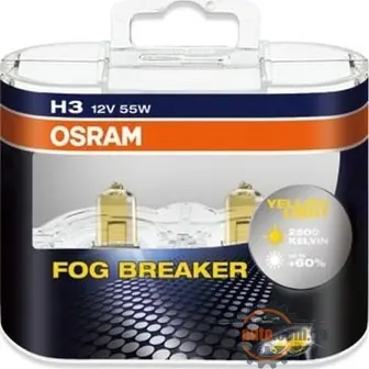 H3Osram Fog Breaker (-2шт)- DuoBox 12V- 55W (-PK22s)- (- +-60%- света+-жёлтый свет)- 62151FBR-HCB